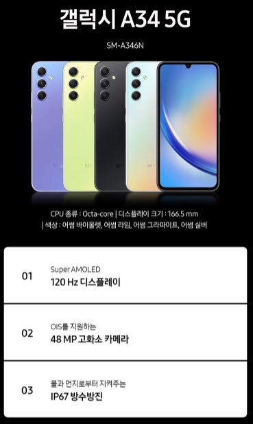 오늘 소개할 제품은 갤럭시 A34입니다.