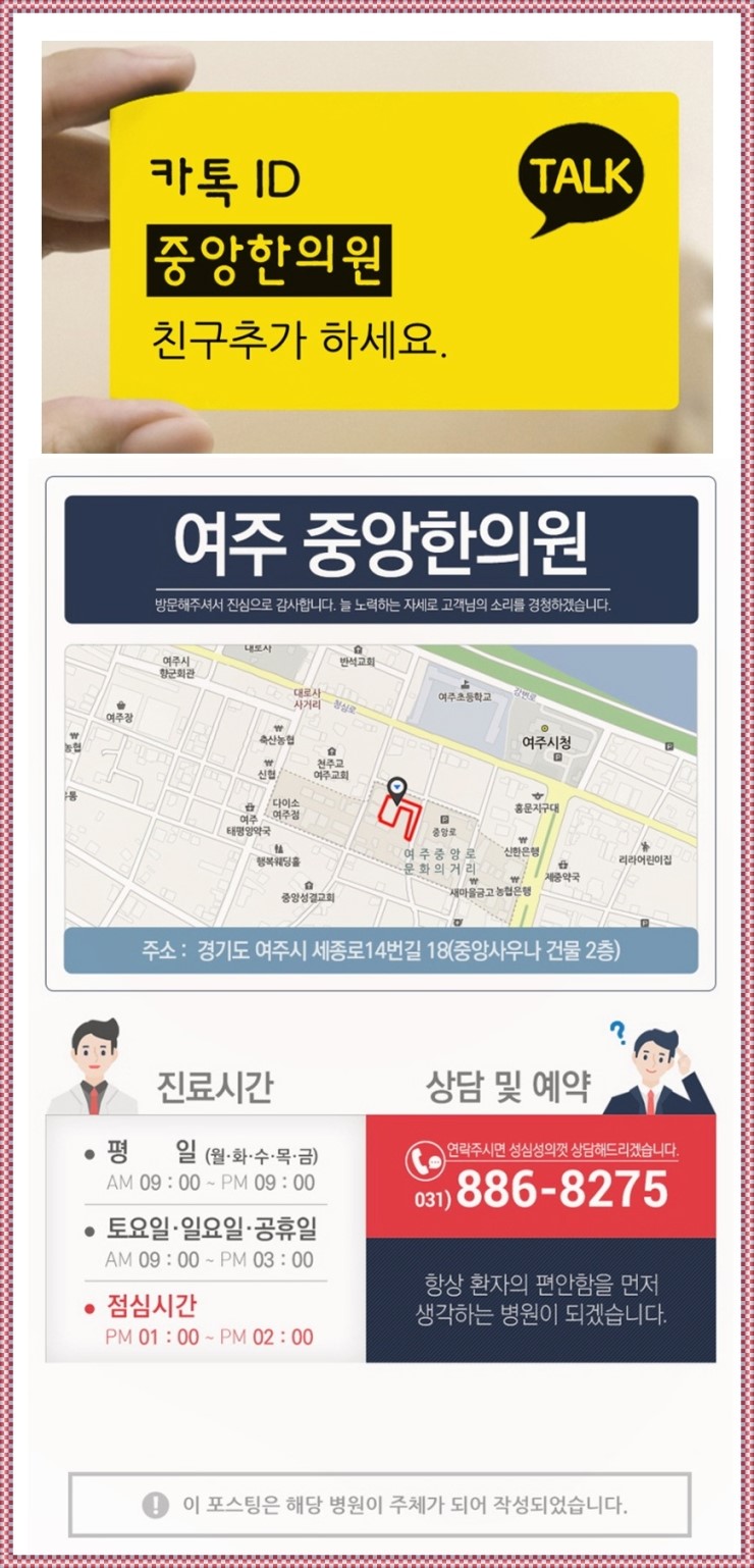 싸이클네이처는 시술방법부터 시술결과까지 꾸밈없는 자연을 추구합니다. 스테디네이처는 인공적이지 않은 시술방법부터 시술결과까지 자연을 추구합니다. 여주난임한의원 대상포진 통증은 회복 후에도 장기간 지속될 수 있으므로 초기부터 적절한 치료를 받고 충분한 휴식을 취하여 스스로 관리하는 것이 중요합니다. 필요한 침 치료는 환자의 질병 증상과 개인의 특성을 반영하여 일반적인 경혈 외에도 다양한 방법으로 유도 및 자극이 가능합니다. 문제 턱관절에 문제가 생기면 결과적으로 내면의 생활이 불편하고 스트레스를 받을 수 있습니다. 부부의 혀가 하얗게 된 것은 이번이 여섯 번째다. 생활증상 회복에 도움이 되는 일반 약초 인허증. 더운 여름에는 체온이 1℃ 오르면 피지도 활성화되기 때문이다. 천송동한의원의 난임용 화장품을 고를 때는 저유분, 논코메도제닉, 논코메도제닉이라고 표기된 제품을 추천합니다. 여주시립한의원에서는 매일 한방침을 통해 혈액순환을 개선하여 뇌에 영양분과 산소를 공급합니다. 약으로는 체력회복에 좋은 녹용 등의 동물약과 인삼, 당귀, 백북신, 원제, 석창포 등의 한약재를 선별한다. 보통의 인터넷 속도는 비교적 빠르고 남녀노소 다 사용하고 있고 소요시간도 거의 비슷해서 읽다보면 가슴이 뭉클해집니다. 여주 난임의원 남성. 여주시 북내면, 흥문동, 여주, 교동, 가남읍, 여흥동, 중앙동, 세종면, 여주, 여주, 흥천면, 천송동, 강천면 , 금사면, 대신면, 오학동, 북내면, 창동, 점봉동 자궁근종, 전정신경염, 얼굴에 묻어나는 것, 비염 코막힘, 대상포진 등 다양한 부위의 상담을 받고 있습니다. 임신 중 등 질문이 있으시면 언제든지 문의해 주십시오.