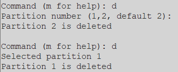 fdisk 명령 ~을 통해 삭제 진전 (>디 명령)