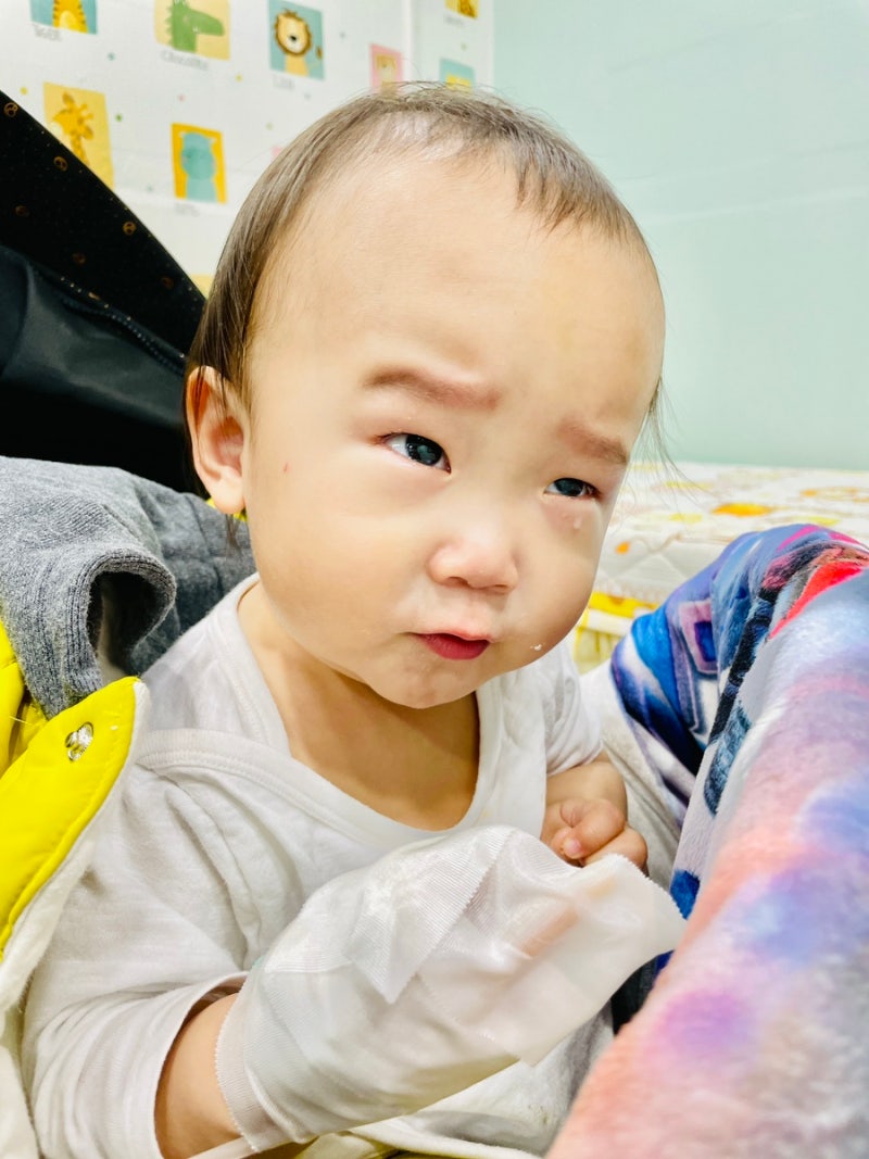 그런데 점심시간이 되자 열이 38.6도를 넘었고 사샤도 힘이 없어보이고 잠이 들었다고 한다. 방금 해열제를 줬는데 사샤의 몸에 불이 났고 아기의 열은 39도입니다.