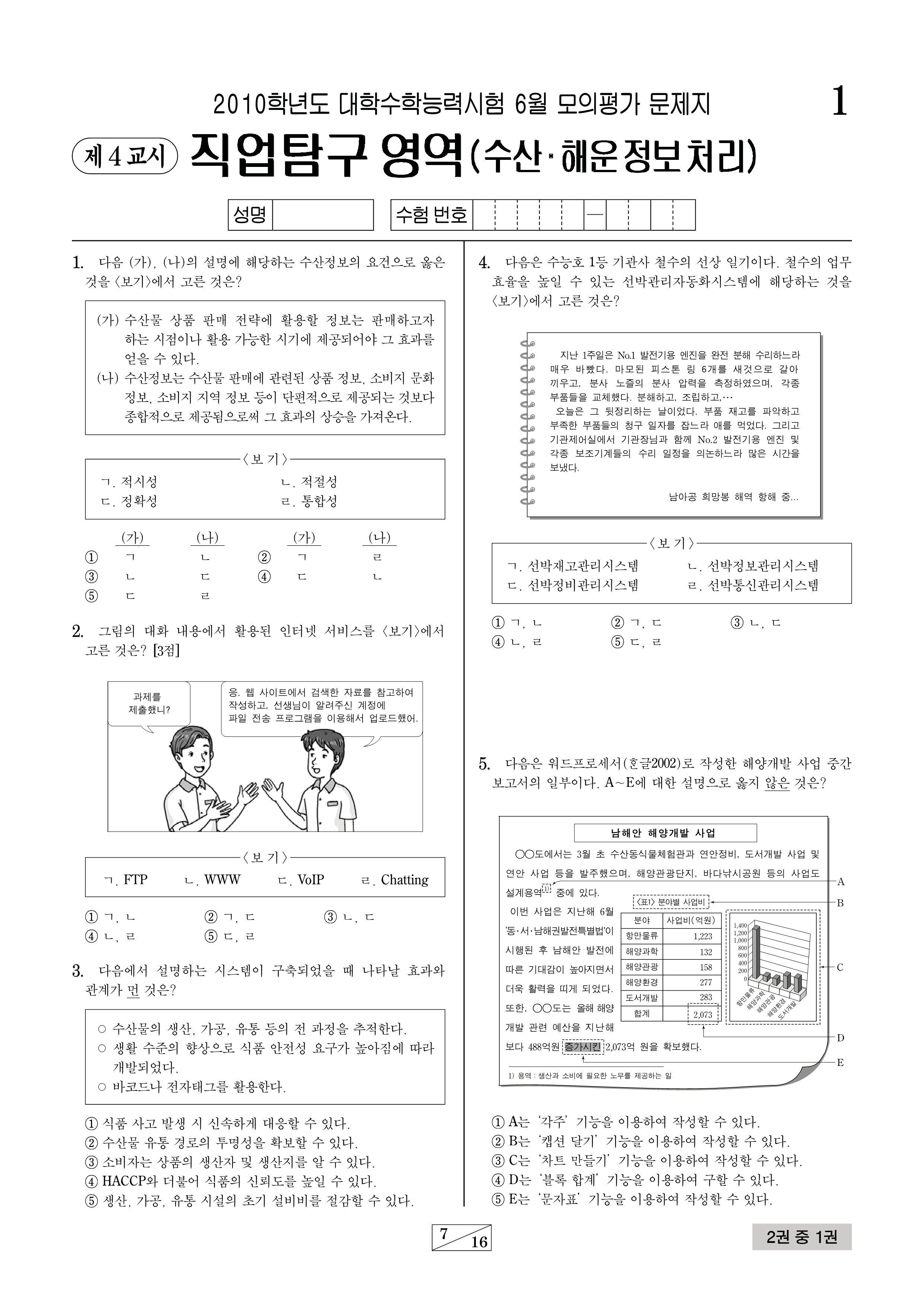 2010년 대학수학능력시험 6월 모의평가 직무(어업 및 해운정보처리)